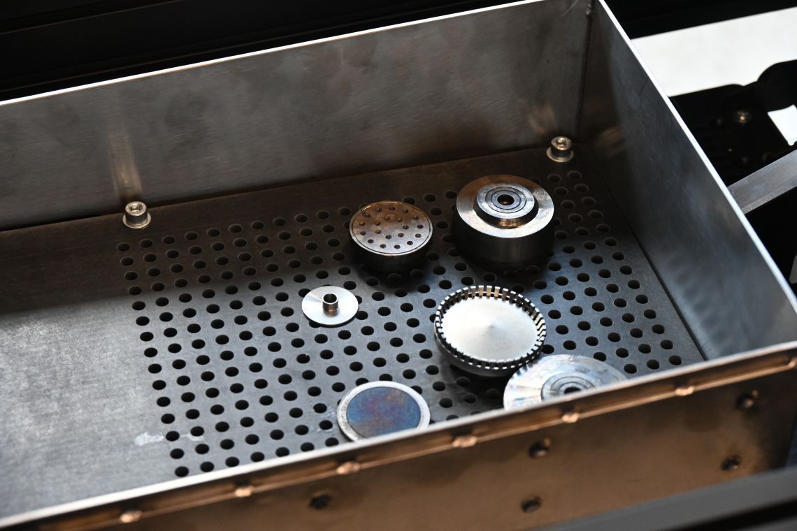 The inner components, together with the spinneret and dust, are collected into the lower cassette.
